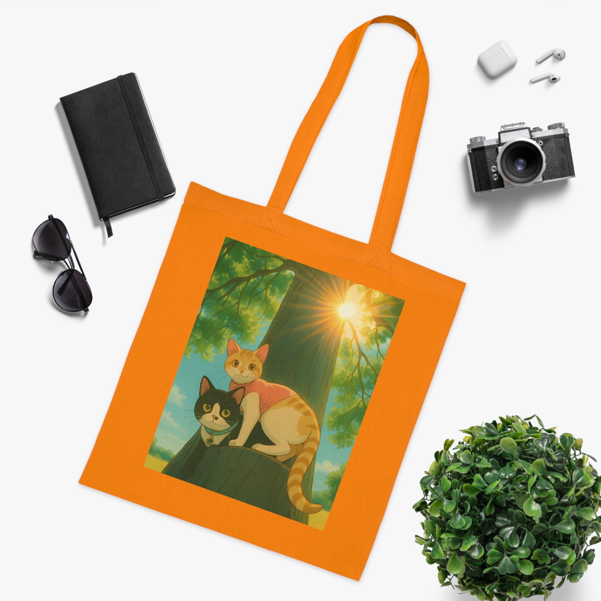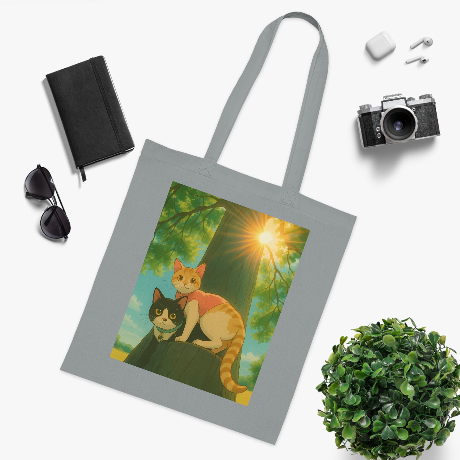 Cute Cat Art Cotton Tote Bag, Eco-Friendly Shopping Tote, Pet Lover Gift, Beach Bag, Reusable Grocery Bag
